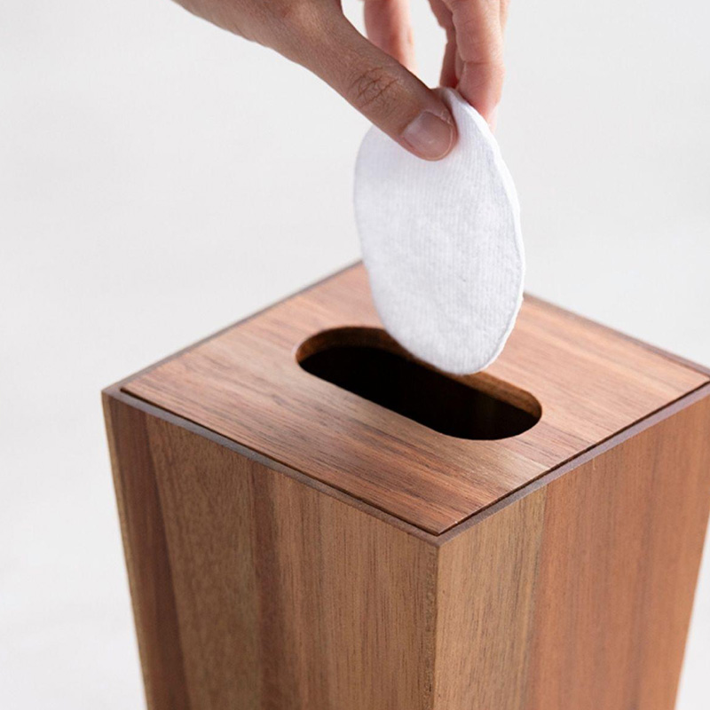 Esta papelera de baño cuadrada está hecha en acacia natural. Su principal características es que es de formato pequeño para poderla tener en la encimera del baño. Tiene una rendija en la parte superior para poder tirar cómodamente los algodones o los discos desmaquillantes. Su diseño en madera hace que sea una buena opción para cualquier cuarto de baño.